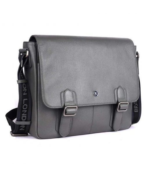 Шкіряна сумка месенджер для ноутбука 14 Brampton London Emissary Grey (Сірий)