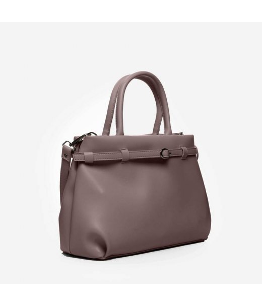 Сумку, з простим кроєм та мінімальним оздобленням, виконано з шкірозамінника високої якості, щоб її використання було максимально тривалим та приємним. Основна увага акцентується на гарній текстурі шкірзамінника ззовні, який з внутрішньої сторони має оригінальне покриття імітоване під велюр. Сумочка має дві короткі ручки, які розраховані на комфортне транспортування в руці. До комплекту входить довгий регульований ремінець. Задня стінка оснащена врізною кишенею на застібці. На дні встановлені металеві ніжки. Весь виріб зачиняється на блискавку.