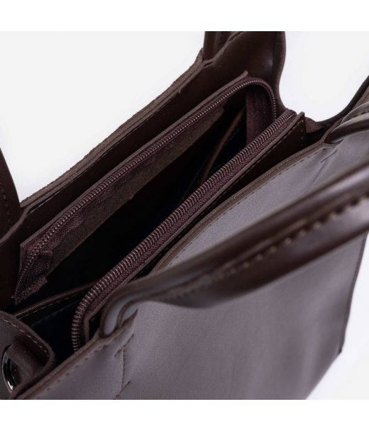 Сумку, з простим кроєм та мінімальним оздобленням, виконано з шкірозамінника високої якості, щоб її використання було максимально тривалим та приємним. Сумочка має дві короткі ручки, які розраховані на комфортне транспортування в руці. До комплекту входить довгий регульований ремінець.