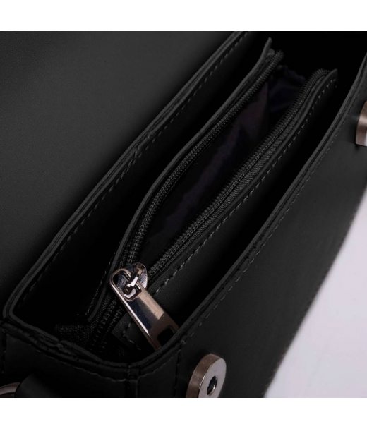 Сумка на одне загальне відділення. Не дивлячись на невеликі розміри, сумочка виявилась достатньо вмісткою. Весь виріб зачиняється на блискавку. Довгий ремінь з можливість регулювання довжини виготовлений з шкірзаміннику. На задній стінці вмонтована кишеня, яка зачиняється на блискавку.
