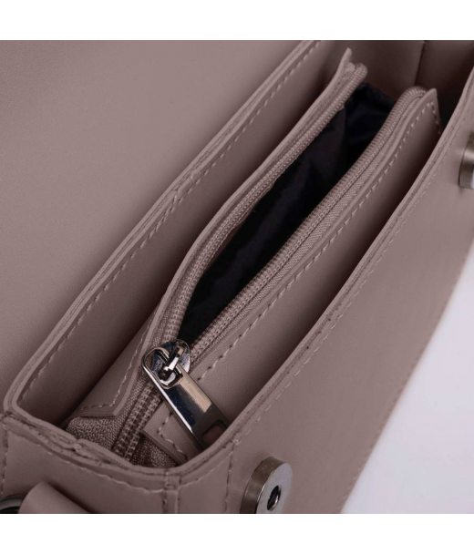 Сумка на одне загальне відділення. Не дивлячись на невеликі розміри, сумочка виявилась достатньо вмісткою. Весь виріб зачиняється на блискавку. Довгий ремінь з можливість регулювання довжини виготовлений з шкірзаміннику. На задній стінці вмонтована кишеня, яка зачиняється на блискавку.