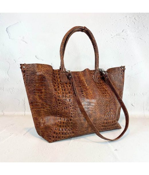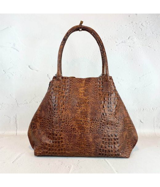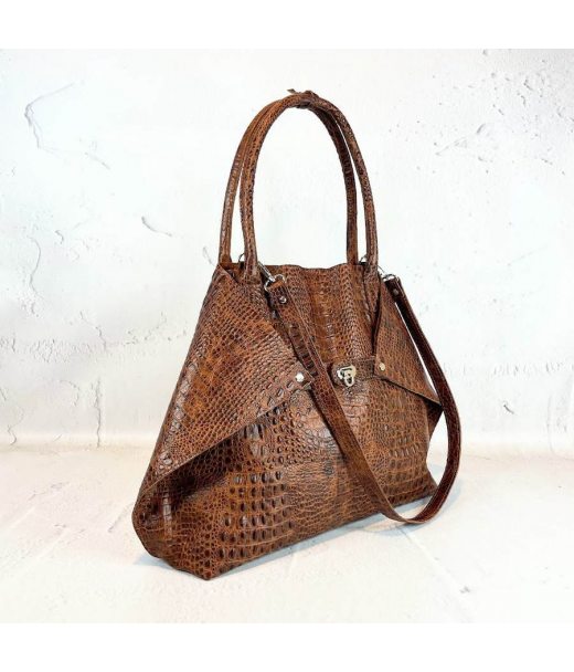 Жіноча сумка "Флай" натуральна шкіра, світло коричнева під крокодила