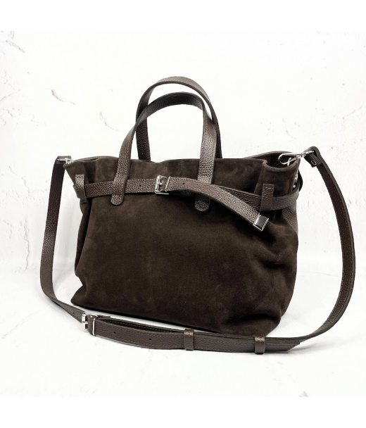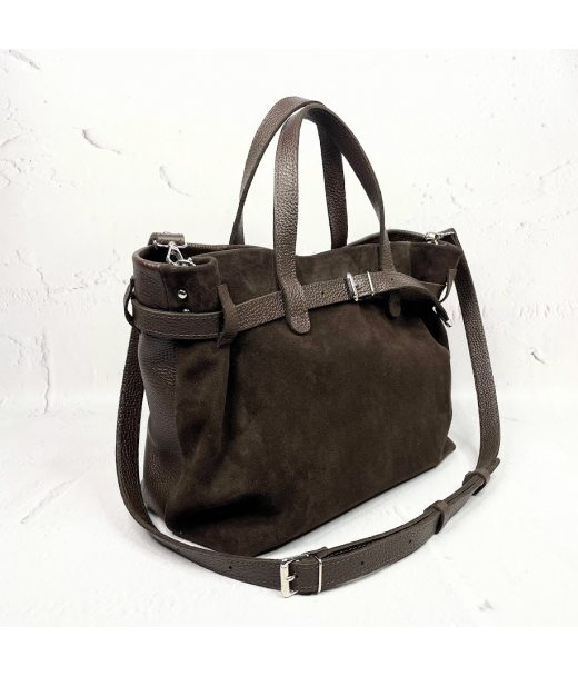 Сумка жіноча "Хлоя" натуральна шкіра, коричневий (шоколад) флотар/замша