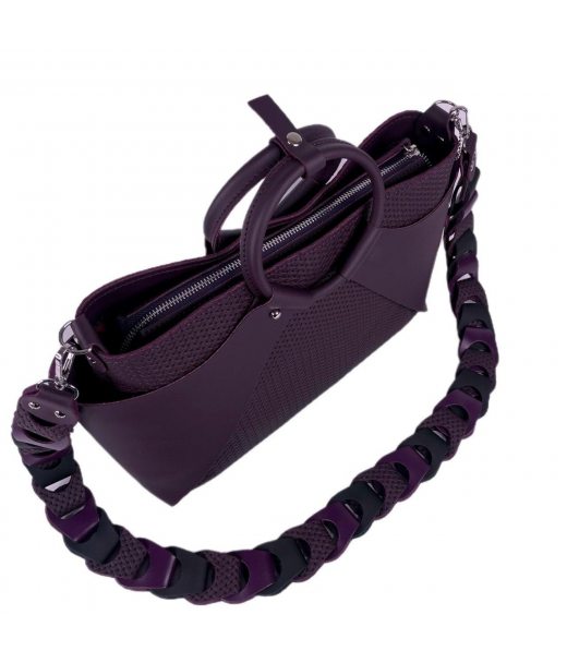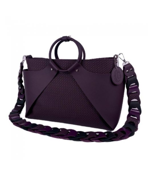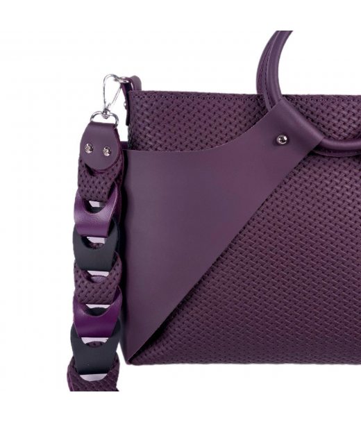 Сумка жіноча "РОНДА" натуральна шкіра, баклажан матова з плетінкою та з плетеним ременем