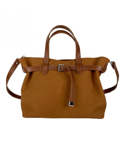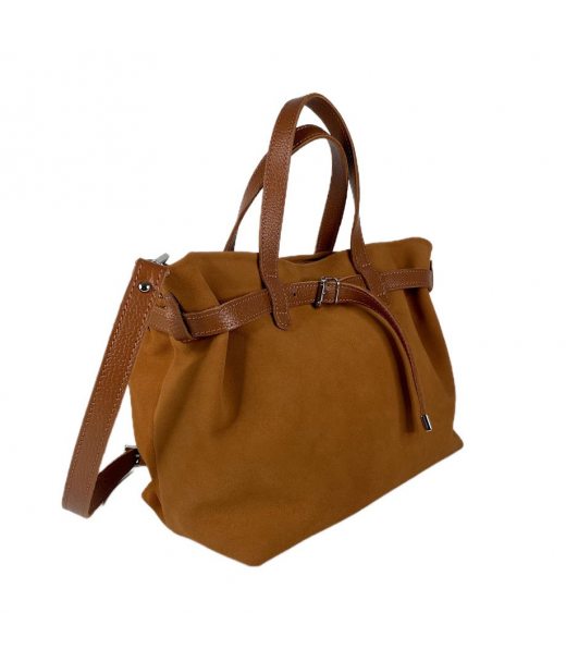 Сумка жіноча "Хлоя" натуральна шкіра, коричневий (капучино) флотар/замша