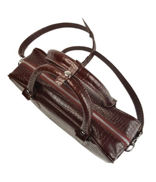 Сумка жіноча "Бріджит" натуральна шкіра,коричнева, тиснення під крокодила