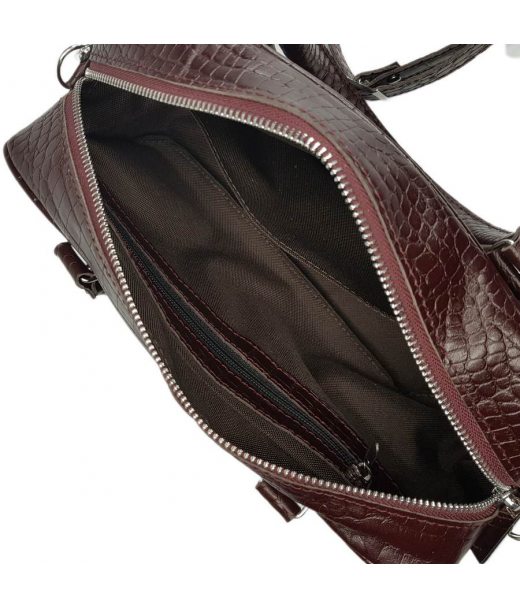 Сумка жіноча "Бріджит" натуральна шкіра, бургунді, тиснення під крокодил