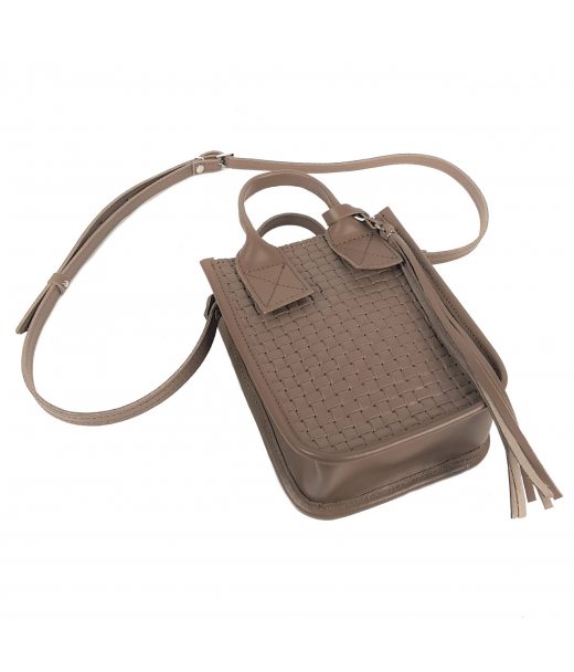 Сумка жіноча "Амелі"" натуральна шкіра, бежева (капучіно) з тисненням венето