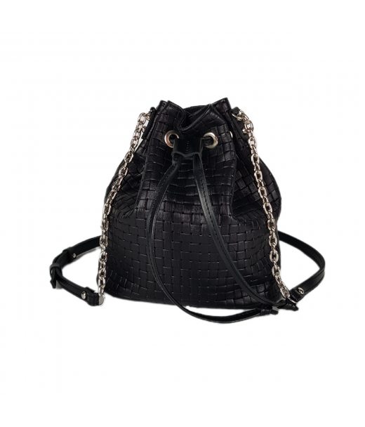 Сумка жіноча "Бель" натуральна шкіра, чорна плетіння вінето