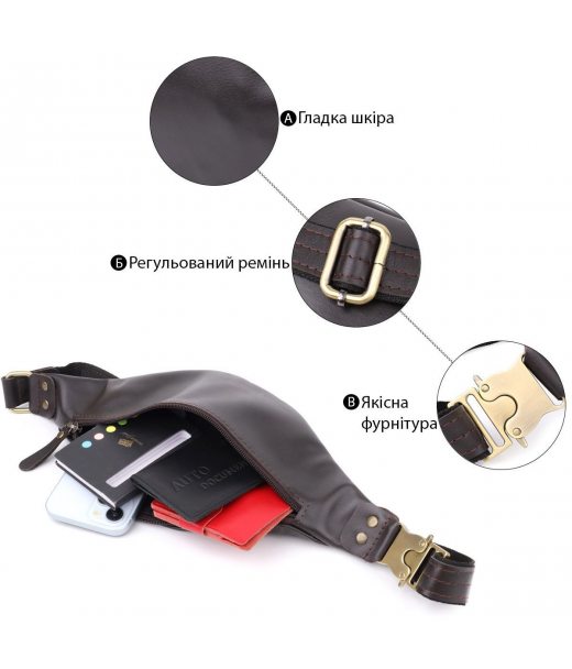 Бананка для чоловіків з гладкої натуральної шкіри Shvigel 23135 Коричневий