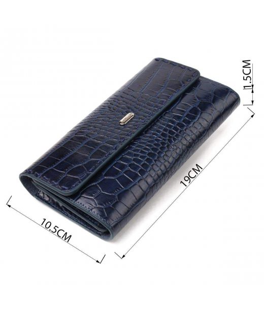 Великий жіночий гаманець із натуральної шкіри з тисненням під крокодила CANPELLINI 21661 Синій