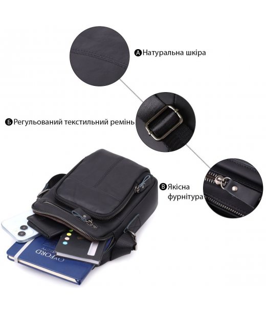 Чорна чоловіча сумка з матової натуральної шкіри - це практичний та стильний аксесуар, створений для тих, хто цінує зручність, стриману естетику та якість матеріалів. Завдяки універсальному дизайну сумка органічно впишеться в діловий гардероб, повсякденний образ або міський стиль. Вона стане надійним супутником протягом дня, дозволяючи завжди тримати необхідні речі під рукою і виглядати елегантно.