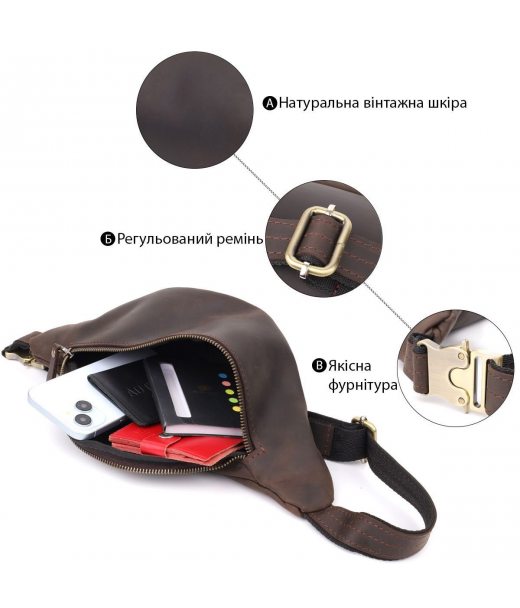 Добротна сумка бананка для чоловіків з натуральної шкіри вінтажної Shvigel 23139 Коричневий