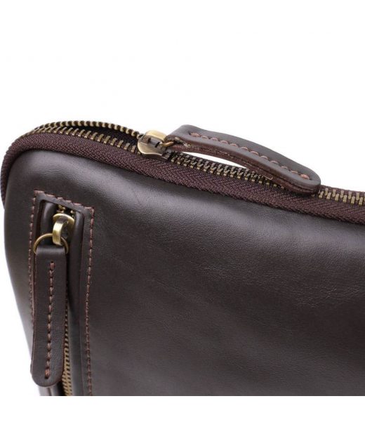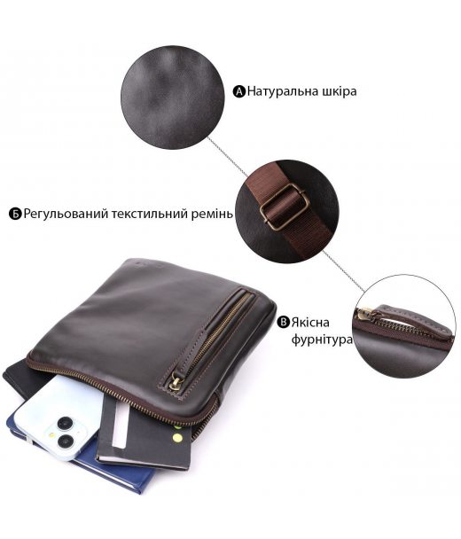Ця чоловіча вертикальна сумка виготовлена українським брендом SHVIGEL, який відомий якісними шкіряними аксесуарами та увагою до деталей. Натуральна гладка шкіра насиченого коричневого кольору наголошує на елегантності, а фірмове тиснення логотипу підтверджує оригінальність виробу.