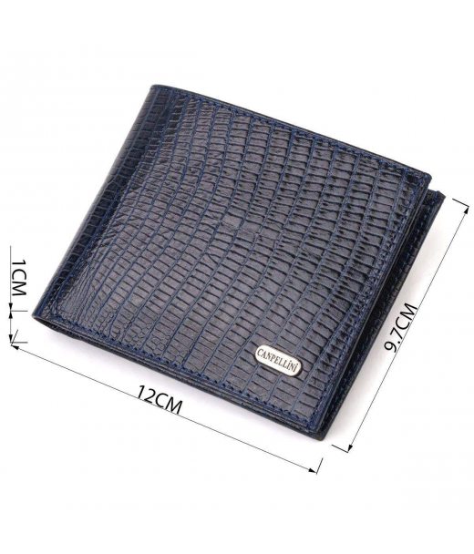 Фактурний стильний гаманець для чоловіків без застібки з натуральної шкіри горизонтального формату з тисненням CANPELLINI 21760 Синій