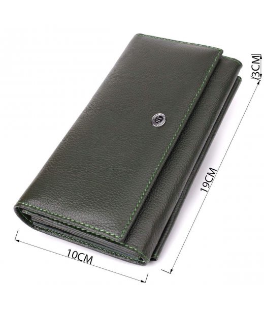 Горизонтальний гаманець з кишенею для телефону з натуральної шкіри ST Leather 23068 Зелений