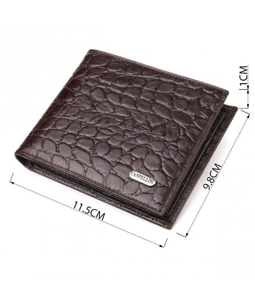 Цікавий гаманець для чоловіків у два складення з натуральної фактурної шкіри з тисненням під крокодила CANPELLINI 21583 Коричневий