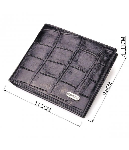 Якісний гаманець для чоловіків у два складення з натуральної фактурної шкіри з тисненням під крокодила CANPELLINI 21584 Чорний