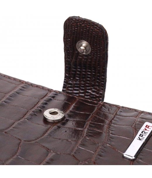 Компактний чоловічий гаманець із натуральної шкіри з тисненням під крокодила KARYA 21386 Коричневий