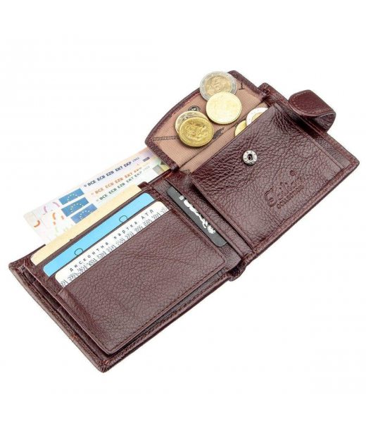 Гаманець має компактні розміри. Його буде легко помістити в кишеню брюк або невелику сумку. Модель горизонтального типу з натуральної шкіри. Виробляється в Китаї. Серед функціоналу є три відділення для купюр, слоти для карток, монетниця. Закривається гаманець на хлястик з кнопкою. В гаманець ви можете помістити права нового зразка до відповідного відділення під плівкою. На лицьовій стороні зафіксовано металеве лого бренду. Модель користується особливою популярністю і при цьому дуже доступна в вартості.