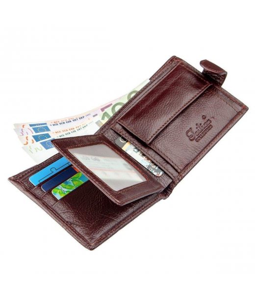 Класичний компактний чоловічий гаманець без зайвих деталей. Аксесуар має необхідний функціонал для будь-якого чоловіка. Закривається гаманець на шкіряний хлястик з кнопкою. Матеріал виконання - натуральна шкіра найвищої якості. У комплекті йде картонна коробка жовтого кольору.