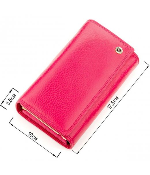 Запропонована модель виготовляється з міцної і зносостійкої шкіри, фіксується на кнопку і оформлений в ніжному рожевому кольорі. Завдяки зручному розвороту є доступ до всіх відділень та слотів, а також є додатковий блок для платіжних карт. Гаманець місткий і зручно розташовується в руках, кишенях і сумочці. Додатково порадує і фірмова коробка, яка має гарний вигляд.