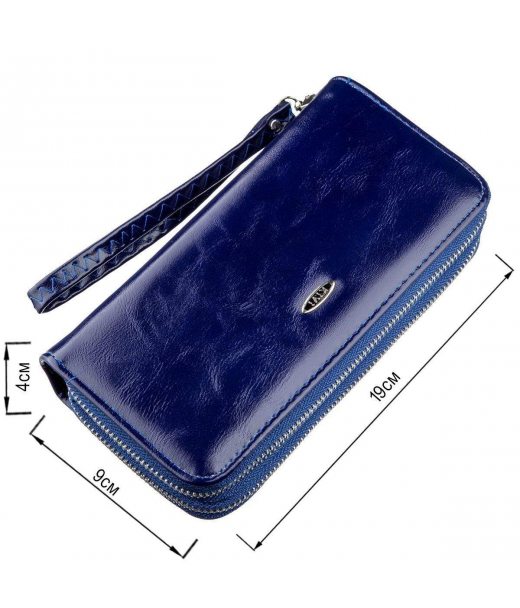 Спокійний синій колір гаманця дуже практичний і при цьому має особливу родзинку. Ви можете носити цю модель як в сумочці, так і на зап'ясті за допомогою відповідного ремінця. Аксесуар не вибагливий у догляді. Модель має достатньо місця для купюр, карток і дрібниць. Усередині аксесуар виконаний з екошкіри в поєднанні з міцним текстилем.