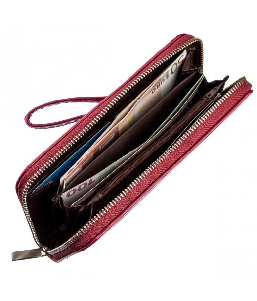 Витончений жіночий гаманець з екошкіри малинового кольору. Аксесуар має весь найнеобхідніший функціонал: просторі відділення для купюр, відділення для карток підібрані під розмір, відділення на блискавці і відкриті кишені. Модель доповнена блискавкою сріблястого кольору і металевим логотипом бренду на лицьовій стороні. Усередині виріб виготовлений з екошкіри в поєднанні з міцним текстилем. У нашому інтернет-магазині ви можете знайти будь-яку модель за доступною вартістю.