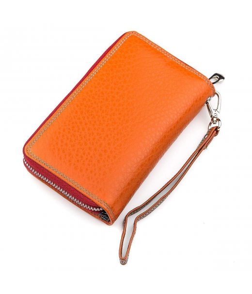 Дана модель входить в популярну лінійку Colorful Line, яка пропонує аксесуари з цікавим, яскравим оформленням. Гаманець виконаний в поєднанні червоного і оранжевого кольорів з якісної, зносостійкої шкіри, що доповнюється текстильною підкладкою. Аксесуар відмінно і приємно розміщується в руках, показуючи чудову функціональність і внутрішню місткість. Закривається гаманець за допомогою блискавки, а з іншого боку є фіксація на кнопку. Комплектація складається з ремінця на зап'ястя і красивої коробки від виробника.