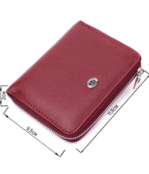Шкіряний гаманець для жінок на блискавці з металевим логотипом виробника ST Leather 19485 Бордовий