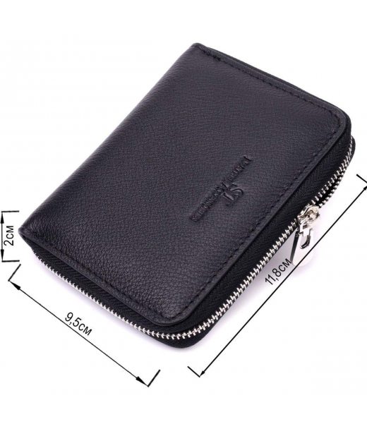 Шкіряний гаманець для жінок на блискавці з тисненим логотипом ST Leather 19489 Чорний