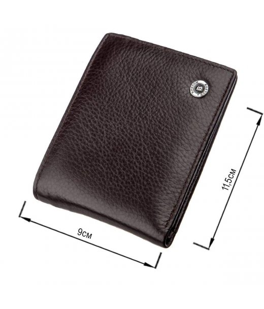 Відмінний чоловічий гаманець з натуральної висококласної шкіри в коричневому кольорі, що надає йому особливого шарму. Має невеликі розміри, але все необхідне Ви цілком зможете в нього вмістити. Легко поміщається в будь-яку кишеню і навіть в зовсім мініатюрну сумку. Такий гаманець практичний і дуже зручний у використанні, особливо цікавий є спосіб закривання гаманця, а саме - на магніт. А це досить таки виграшна функція даного аксесуара. Упакований гаманець в білу щільну картонну коробку з фірмовим логотипом.