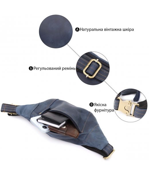 Красива сумка-бананка для чоловіків з натуральної vintage шкіри Shvigel 23123 Синій