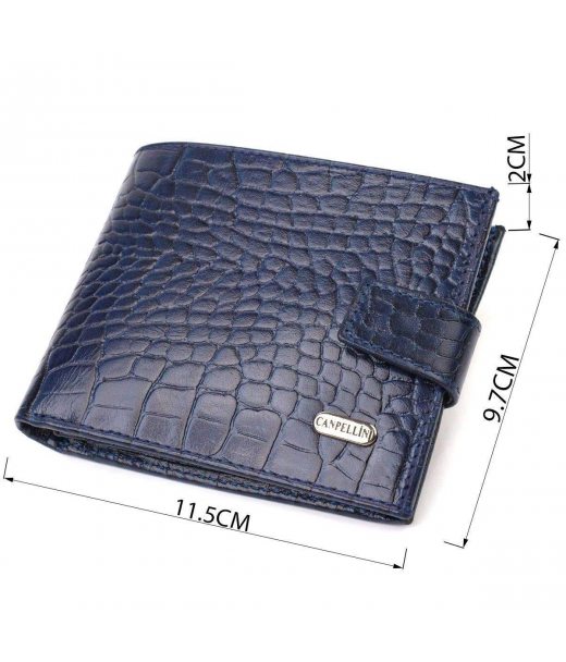 Гарний горизонтальний гаманець для чоловіків з натуральної шкіри з тисненням йод рептилію CANPELLINI 21889 Синий