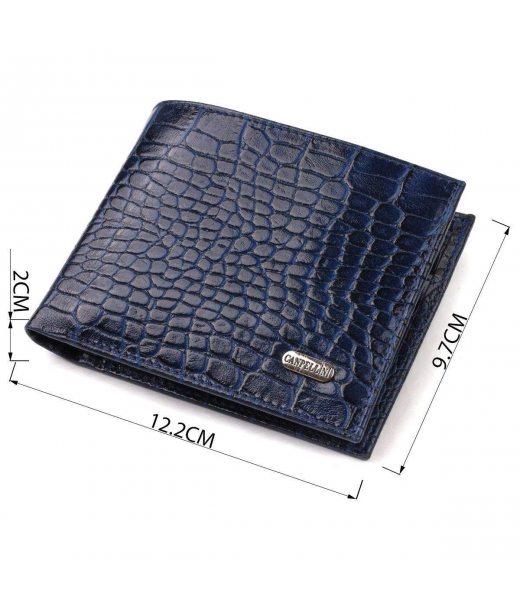 Красивий горизонтальний чоловічий гаманець середнього розміру з натуральної шкіри з тисненням під крокодила CANPELLINI 21861 Синій