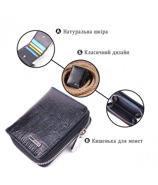 Лакований гаманець для жінок з монетницею на блискавці з натуральної шкіри фактурної KARYA 21411 Чорний