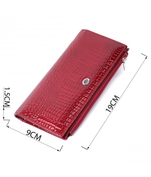 Лакований яскравий гаманець з фактурою під рептилію з натуральної шкіри ST Leather 22715 Червоний