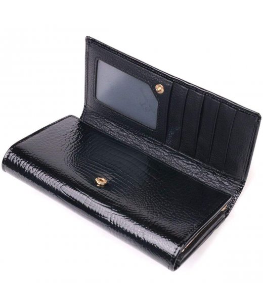 Лаковий жіночий гаманець з візитницею ST Leather 19403 Чорний