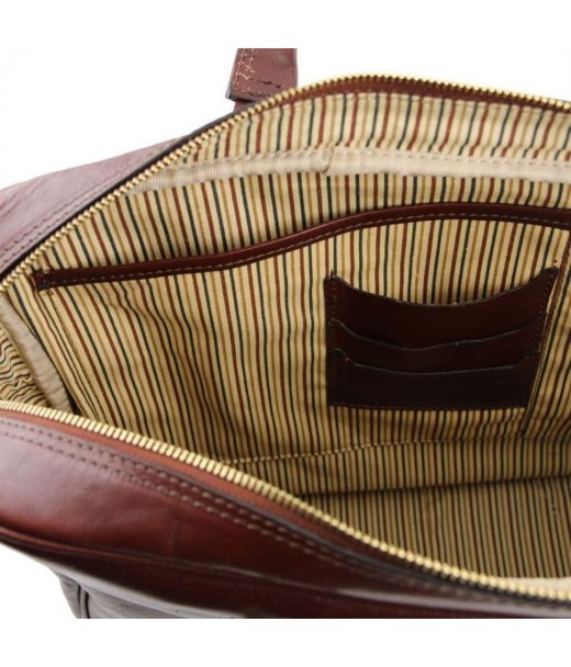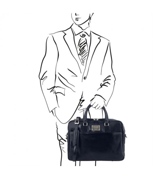 Ексклюзивна сумка шкіряна портфель Tuscany Leather Urbino – найкраще, що можна запропонувати для транспортування дорогого гаджета з діагоналлю до 16 дюймів. Аксесуар створювали із натуральної тосканської шкіри рослинного дублення. Модель має м'яку структуру. Своєю особливістю вважає унікальний фасон із блискавкою, яка закриває вміст сумки. Тут будуть додаткові кишені під смартфон, ключі, канцлерські предмети. Ефектності додасть латунна фурнітура. Дві мультифункціональні кишені дозволять зберігати такі дрібниці, як смартфон, зарядку, футляр для окулярів та ін. Особливістю моделі є оригінальна блискавка та можливість брати на роботу, у відпустку чи відрядження iPad.