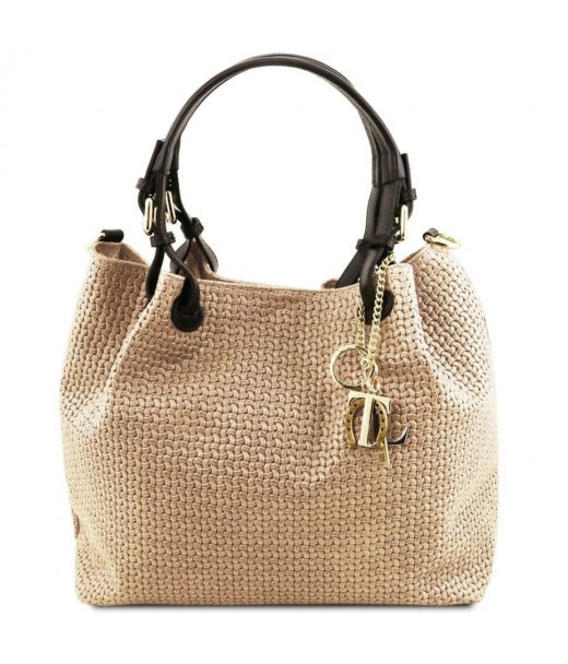 Шкіряна сумка-шоппер KeyLuck з плетеною тисненням Tuscany TL141573