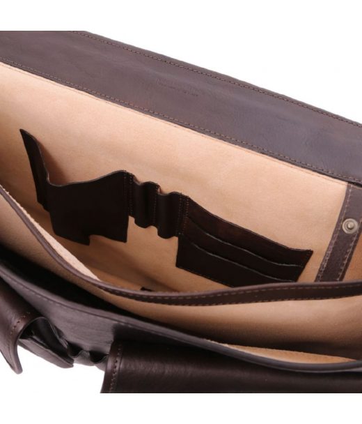 Склад: Matte full grain hand stained vegetable tanned leather, Без підкладки - Features: Semi-rigid structure, 2 відділення - Зовнішня частина: Pocket on the back side, 2 накладні багатофункціональні кишені на застібці - Внутрішня частина: Keyring attachment, Kармашок для кредитних , Карман, 2 Pen pockets - Плечовий ремінь: Регульований плечовий ремінь, Знімний плечовий ремінь, Шкіряний плечовий ремінь - Формат: Поміщається ноутбук 17" - Металеві частини: Латунна фурнітура з ефектом старіння, Нікельована фурнітура - Застібка: Меблі: для зберігання Розміри: 13.00 х 31.00 х 45.00 см. Вага: 1.93 кг.