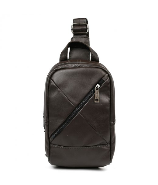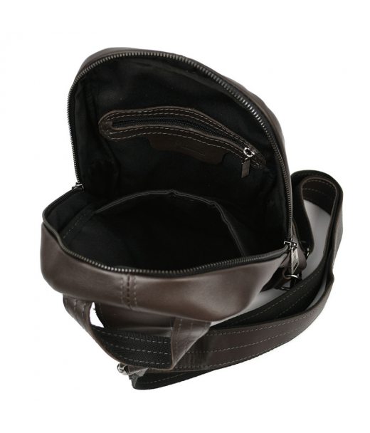 Чоловічий слінг шкіряний рюкзак ТАРВА 6010 виготовлений з телячої шкіри коричневого кольору.
