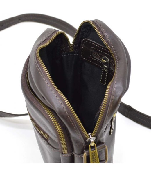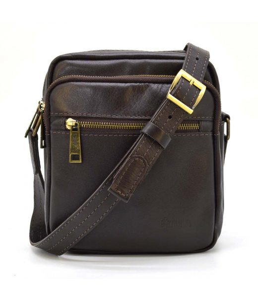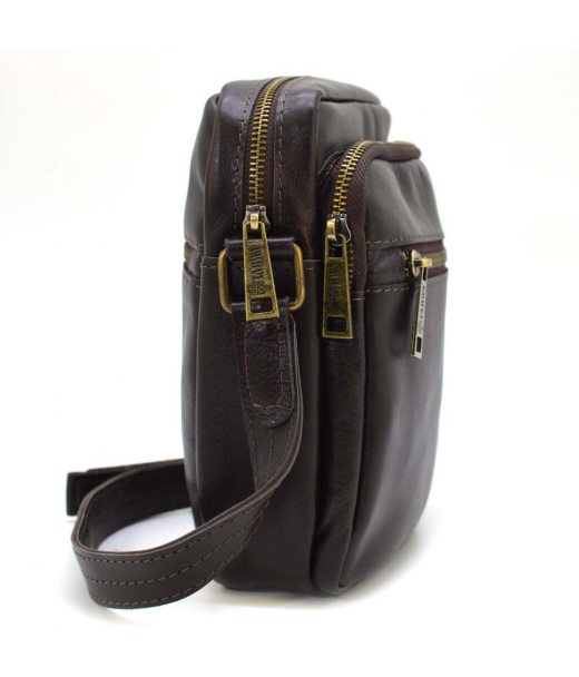 Чоловіча шкіряна сумка через коричневе плече GC-8086-3md від українського бренду TARWA. Маленька, але містка сумочка, в якій Ви з легкістю зможете розмістити свої необхідні речі. Виріб на одне відділення, з внутрішньою кишенею врізною з блискавкою. На лицьовій стороні є дві кишені з блискавками, а також на тильній стороні одна кишеня. Аксесуар оснащений шкіряним регульованим двостороннім ременем.