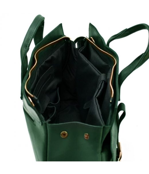 Застібається сумка за допомогою блискавки на головному відділенні. Зовні на задній стороні сумки є кишеня на блискавці. На лицьовій стороні аксесуара розташовуються два містких кишені, що закриваються шкіряним клапаном з ремінцями і магнітами. У комплекті є неоплачений знімний ремінь з широким діапазоном регулювання довжини. Усередині сумка обшита щільною тканиною. Фурнітура - срібло. Даний аксесуар може використовуватися як бріфкейс, портфель, щоденна шкіряна сумка, сумка на плече, сумка шкіряна для ноутбука.