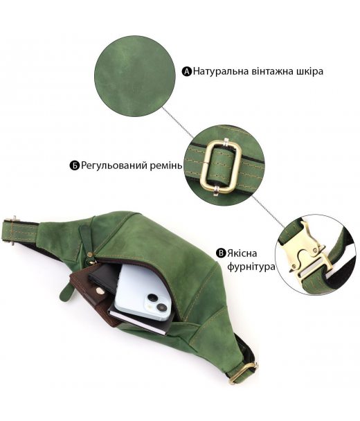 Модна сумка-бананка для чоловіків з натуральної vintage шкіри Shvigel 23124 Зелений