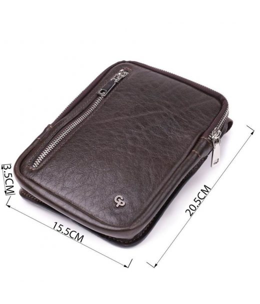 Чоловіча прямокутна сумка бананка з гладкої натуральної шкіри GRANDE PELLE 22880 Коричневий