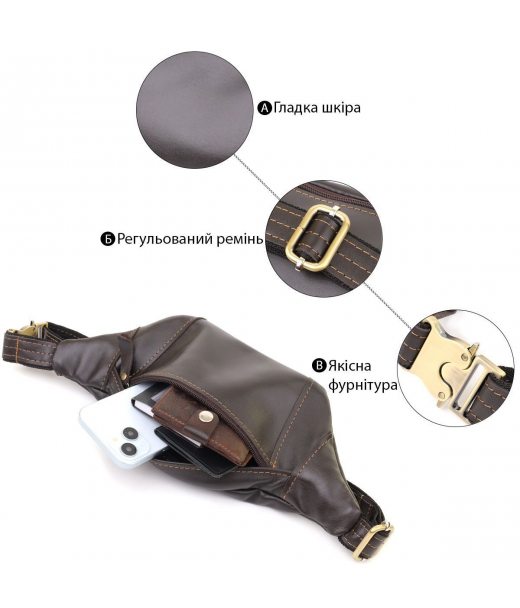 Чоловіча сумка-бананка компактного розміру з натуральної шкіри Shvigel 23126 Коричневий