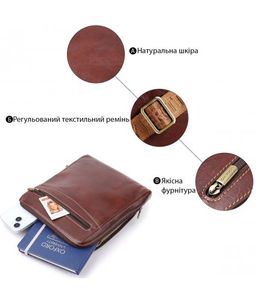 Чоловіча сумка через плече з гладкої натуральної шкіри Tony Perotti 20854_1 (9137-20 moro) Коричневий