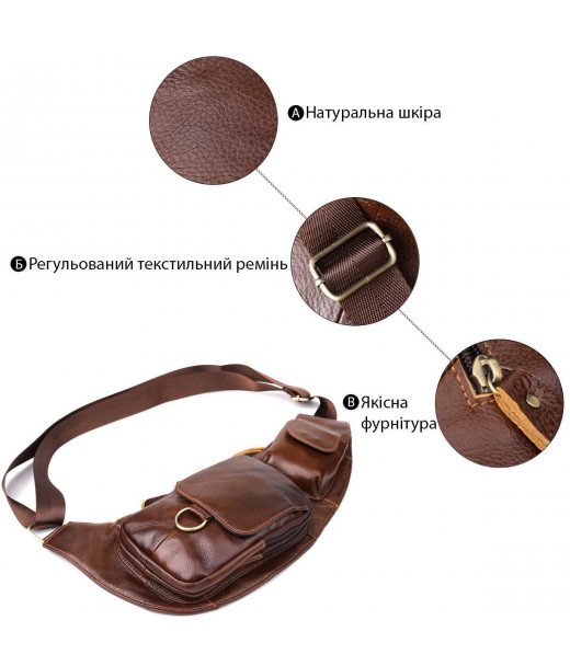 Напівкругла чоловіча шкіряна сумка через плече — практичний та стильний аксесуар для сучасного чоловіка, який цінує якість та зручність.