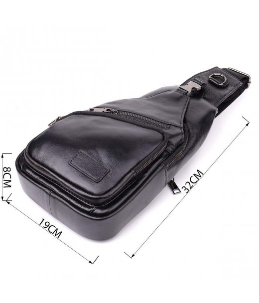 Чорна шкіряна сумка через плече поєднує у собі вишуканий зовнішній вигляд та продуману функціональність. Одне основне відділення на блискавці забезпечує безпеку та зручність зберігання речей. Усередині розташовані дві кишені — одна на блискавці для цінних дрібниць і одна відкритого типу для швидкого доступу.